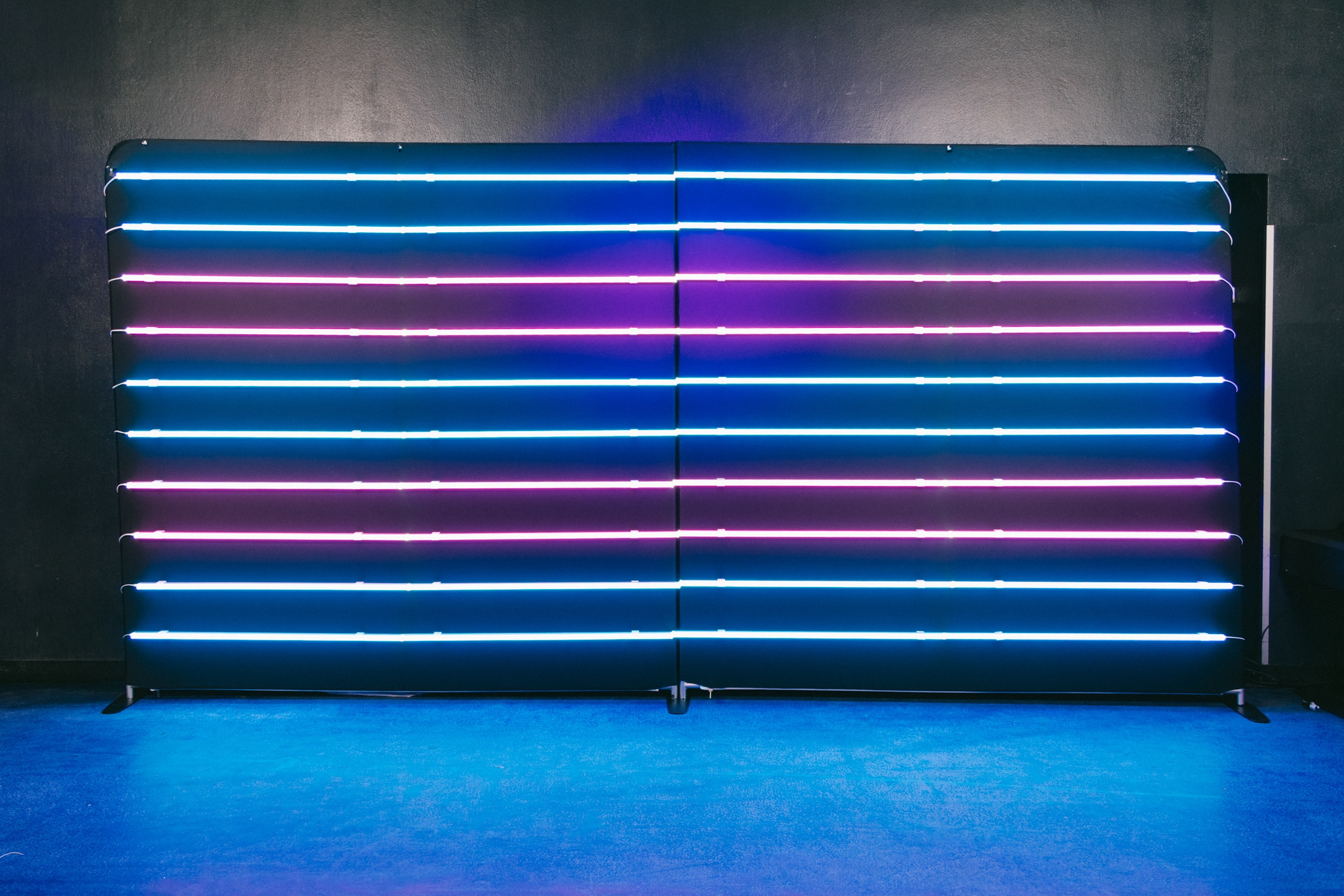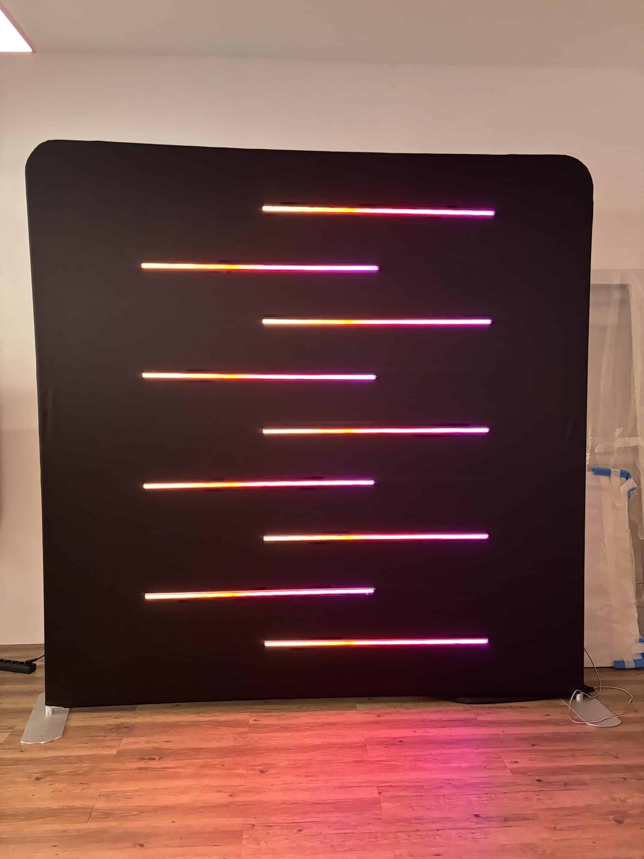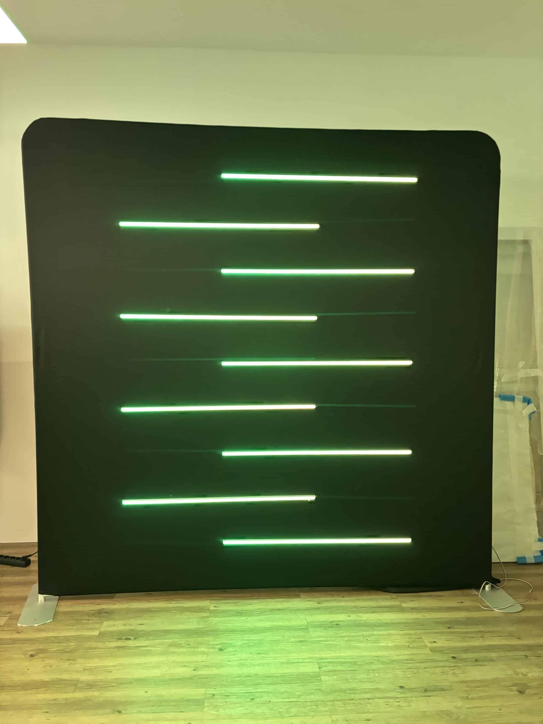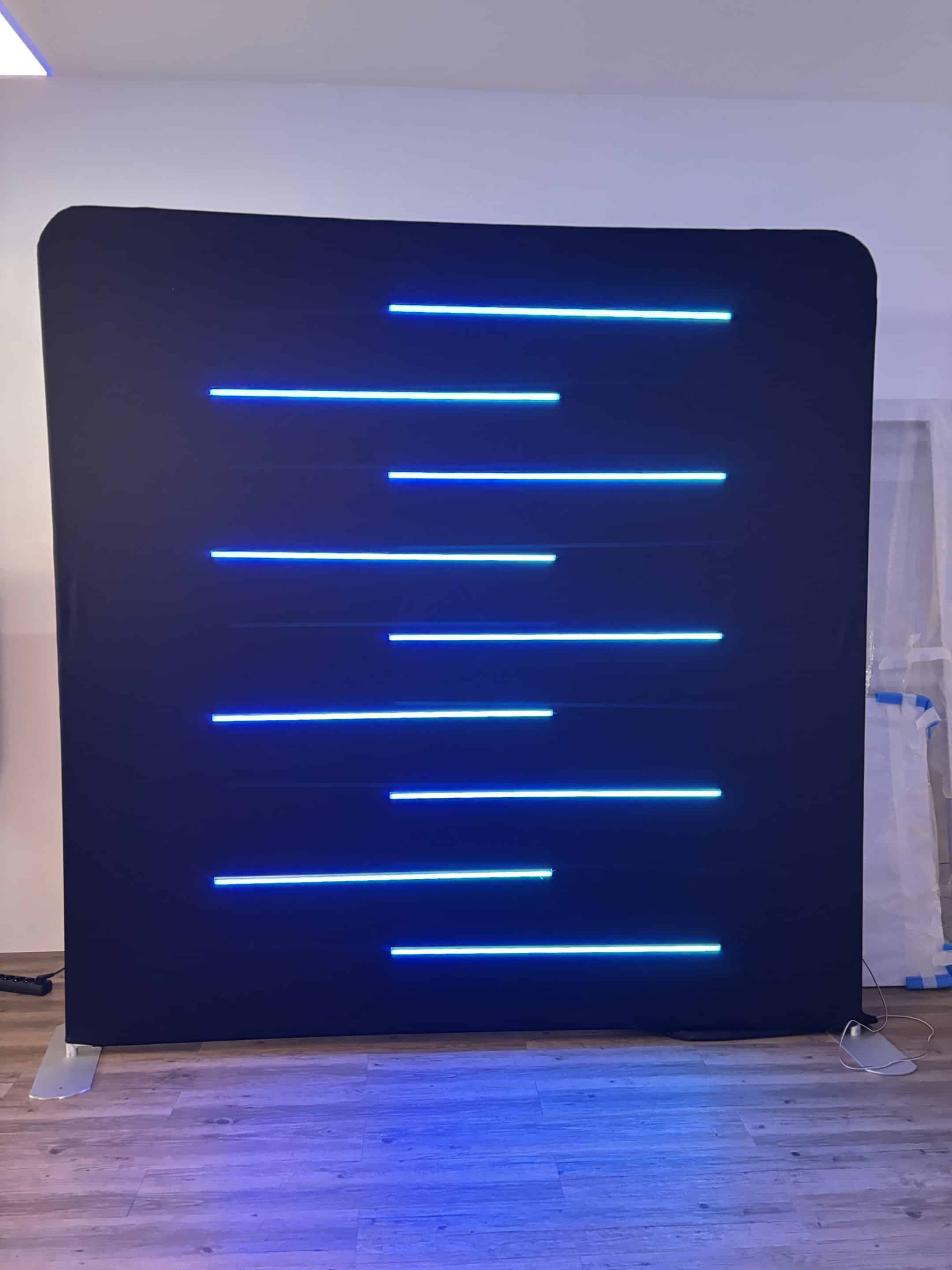 Remplacez votre photocall autoportant personnalisé par un photocall lumineux aux couleurs de votre logo.